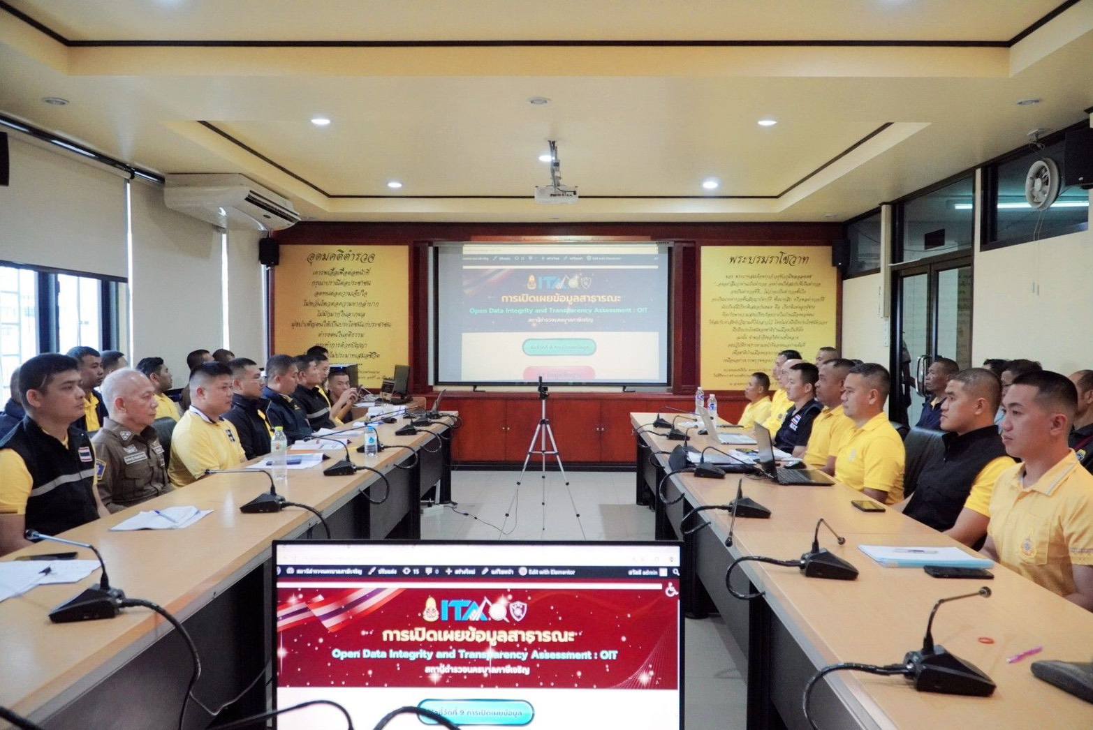 วันที่ 26 มี.ค.68 เวลา 13.00 - 19.00 น. พ.ต.อ.วุฒิชัย ไทยวัฒน์ รอง ผบก.น.9 พร้อมด้วย, ผกก.สน.ภาษีเจริญ, คณะกรรมการ ITA, เจ้าหน้าที่ admin ทุก สน. และ เจ้าหน้าที่ธุรการ ทุกสายงาน ประชุมติดตามการดำเนินงาน การประเมินคุณธรรมและความโปร่งใสในการดำเนินงาน ของหน่วยงานภาครัฐ (Integrity and Transparency Assessment : ITA) ของสถานีตำรวจนครบาล ประจำปีงบประมาณ พ.ศ.2568 ณ ห้อง ศปก.สน.ภาษีเจริญ