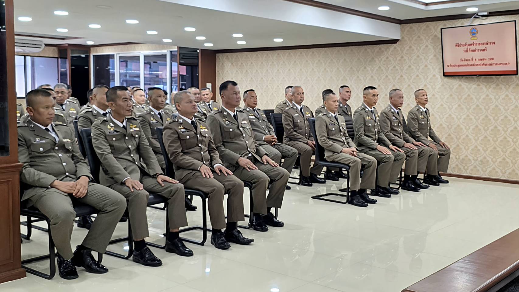 บก.น.9 จัดพิธีประดับยศแก่ข้าราชการตำรวจในโครงการ ด.ต.ที่มีอายุ 53 ปีขึ้นไป เพื่อเลื่อนตำแหน่งและเลื่อนยศแบบเลี่อนไหล เป็นชั้นสัญญาบัตร ประจำปี 2568