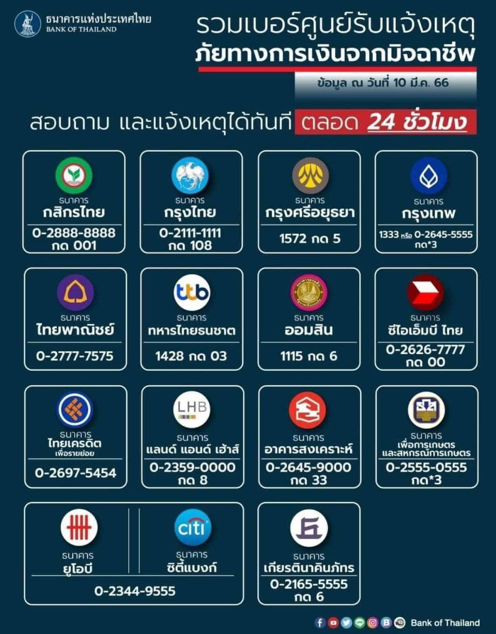 เตือนประชาชนระมัดระวังการชักชวนเข้าร่วมลงทุน ผ่านช่องทางออนไลน์ที่มีลักษณะเป็นแชร์ลูกโซ่ ซึ่งอาจเข้าข่ายกระทำความผิดตาม พ.ร.ก.การกู้ยืมเงินที่เป็นการฉ้อโกงประชาชน พ.ศ. 2527